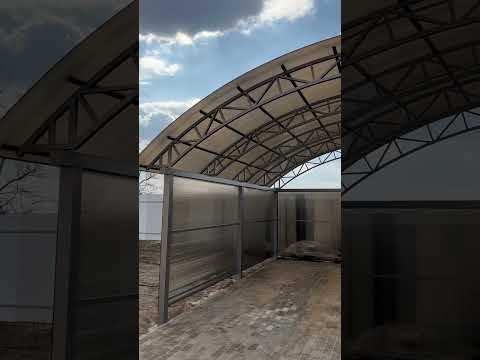 Собрали односкатный арочный навес из поликарбоната для машины скат от соседа